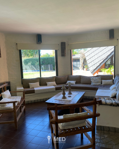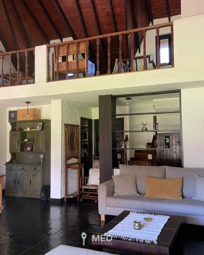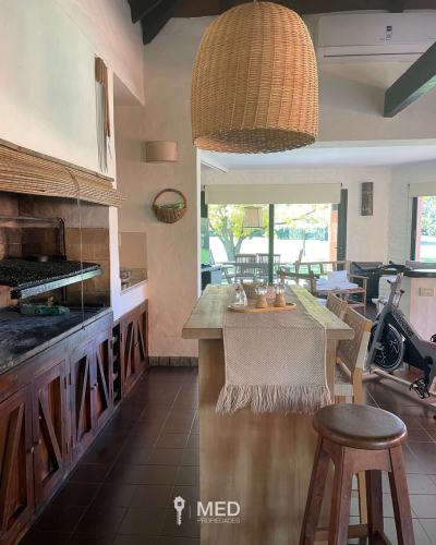 Casa en venta en Los Lagartos Country Club, Pilar, con increíble vista abierta al golf. Ubicada sobre dos lotes que suman 1.226 m², esta propiedad ofrece privacidad, verde y un entorno único. Desarrollada en dos plantas, cuenta con 367 m² construidos, amplio living-comedor, cocina con comedor diario, dormitorio principal en planta baja, dependencia y lavadero. En planta alta, un estar y dos dormitorios que comparten un baño completo. En el exterior, se destaca el quincho cerrado con parrilla y hogar, dormitorio de huéspedes con baño completo, galería con vista al golf, jardín con pileta, parrilla exterior, baulera y cochera para dos autos. La casa cuenta con estufas tiro balanceado, aire acondicionado, pisos cerámicos y aberturas de madera y PVC. Tiene acceso directo a los colegios Saint Matthew’s y North Hills, y está muy cerca de Saint John’s. Viví en uno de los barrios más exclusivos de Pilar, con seguridad, golf, tenis, fútbol, gimnasio y restaurante.
